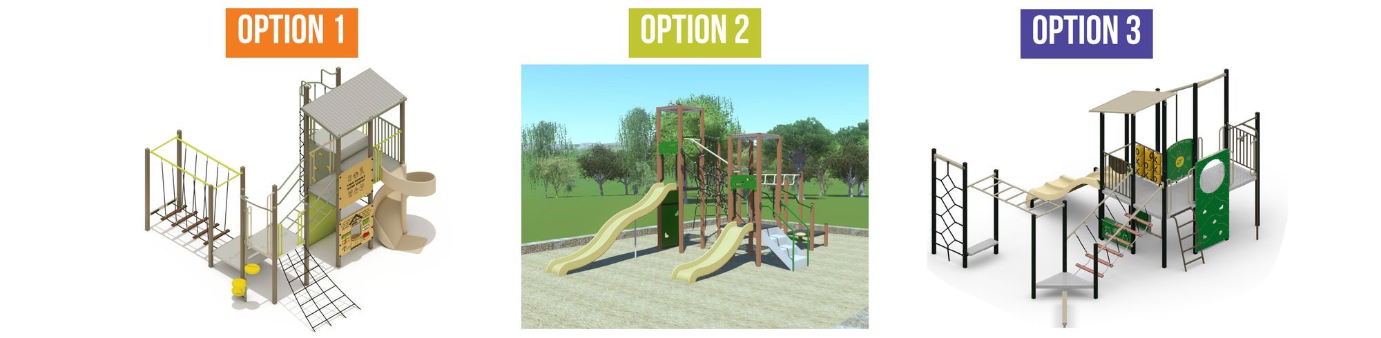 We provided three creative playground designs to vote on, each packed with unique play elements and imaginative features. From adventurous climbing structures to spaces that spark creativity and connection, every design aims to bring fun and activity to the community.
