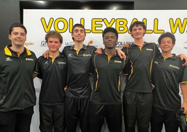 Jaxon Neill second from right, was recruited by the Australian Volleyball Academy in 2025 and moved to Canberra before injury forced him back to Perth. He says his City of Melville Youth Sport Scholarship, with free gym and pool access, is helping him build some ‘serious strength’ so he can return to the sport a better player post-injury
